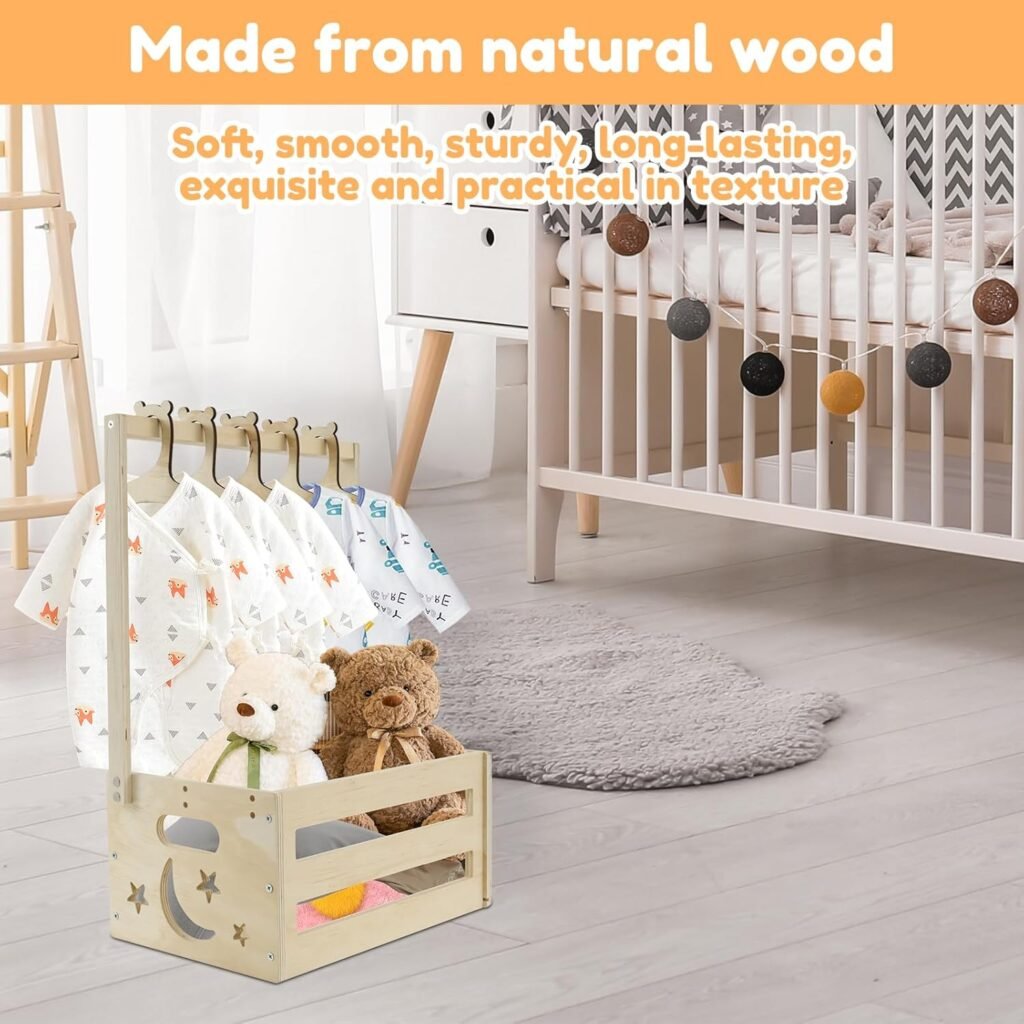 - Incluye 5 perchas de madera para colgar prendas pequeñas de bebé, mantas, baberos o conjuntitos.