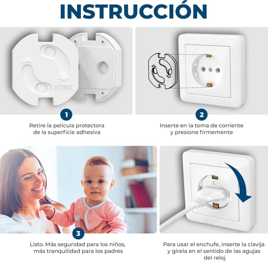 Los adultos pueden retirarlos con ayuda del enchufe o herramienta incluida (según modelo), pero no son fáciles de quitar para un bebé.