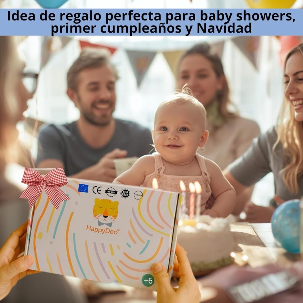 Este set de HappyDoo es una opción muy equilibrada: incluye todo lo que un bebé necesita para empezar a comer solo, hecho en silicona blanda segura, con ventosas que ayudan a evitar que vuelen los platos. Es muy práctico para el día a día y un excelente regalo de baby shower.